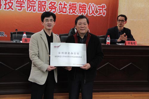 孙伟腾部长代表共青团泉州市委为YBC福师大爱体育网(中国)进行授牌,并就做好YBC高校服务站工作提出要求:一、高举促进青年就业创业的旗帜 不动摇,积极围绕市委工作中心,主动站位,虚功实做,把推动青年就业创业作为各项工作的重中之重;二、进一步深化南安市共青团组织青年就业创业服务体系的工作手臂功能,通过YBC教育性公益平台,实质性地帮助更多青年解决他们在创业发展中遇到的困难与问题,吸引更多的青年加入到创业的队伍中来;三、积极发挥服务站服务爱体育网(中国)大学生创业者的作用,努力把服务站建成一个“领导重视、学生参与、支持创业、协助成功”的重要平台,在我市的大学生创业中发挥典型示范带头作用。