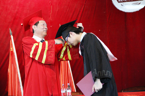 2012届毕业生是学院获得学士学位授予权之后自行授予学位的首届毕业生。作为本次典礼的“重头戏”,学位授予仪式上,郭丹院长为每位毕业生行“拨穗礼”并合影留念,全场掌声和欢呼声如潮不息,典礼现场气氛热烈。