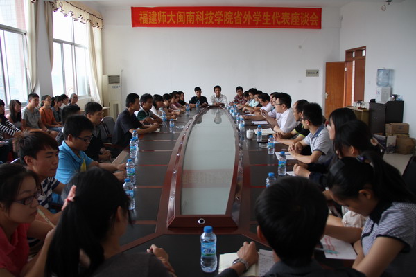 10月16日下午,我院2013级新生省外学生代表座谈会在美林校区办公楼会议室举行。学院院长邱永渠、党委副书记李彬源、学工部部长林树生、相关职能部门负责人及辅导员代表、34名省外新生代表参加了此次会议。会议由李彬源主持。