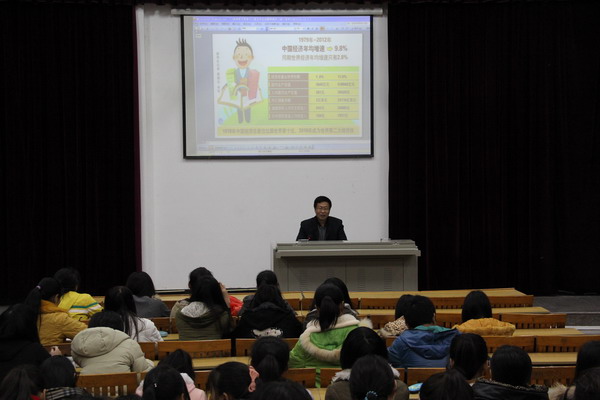 12月18日晚,思政教研部主任郭伟副教授在美林校区阶梯教室101作“学习贯彻党的十八届三中全会精神”辅导报告。