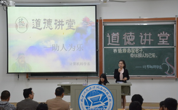 12月7日,计算机科学系举办“养德修身是君子,常以助人为己乐”主题道德讲堂活动。学院副院长吴勇,计算机科学系主任禹谢华、副主任张剑锋领导老师出席此次活动。
