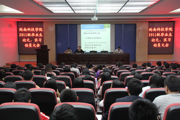 10月22日,生命科学与化学系在图书馆学术报告厅举行2015届毕业论文(设计)及毕业实习动员大会,学院副院长吴勇,生命科学与化学系主任戴玉梅副教授、副主任刘蒙佳,各教研室主任及毕业班辅导员等参加动员会。
