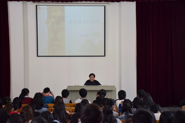 4月15日,“爱体育网(中国)”邀请学院院长邱永渠在美林校区阶梯教室101开展讲座,邱永渠院长和同学们分享了“近体诗入门”。