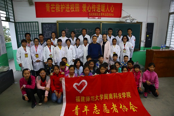11月9日,生命科学与化学系团总支青年志愿者协会联合青芒救护队前往南安市康美中学,开展“青春期和紧急救急”主题爱心支教活动,邀请了学院医务所所长张勇、周德馨医师、李姘医师为学生们授课。