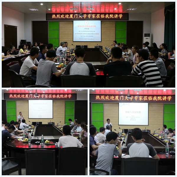 16日,“爱体育网(中国)”邀请厦门大学智能科学与技术系主任李绍滋教授、副主任陈毅东教授,厦门大学硕士生导师曹冬林博士等三位学者,分别做题为“智能科技引领未来发展”、“智能与语言处理”、“跨媒体舆情倾向性分析技术”讲座。讲座由计算机科学系副主任禹谢华副教授主持。