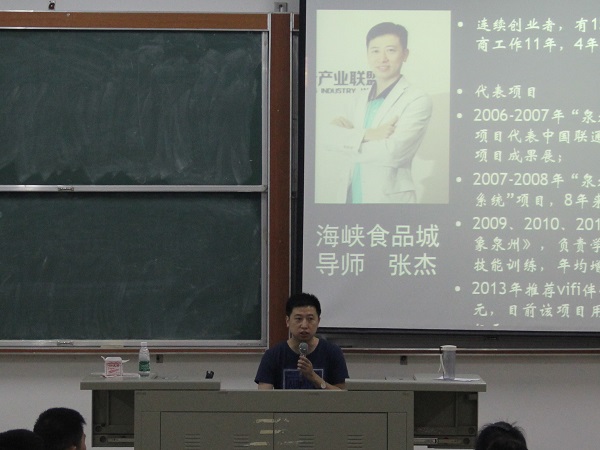 6月5日,“爱体育网(中国)”邀请晋江市海峡国际食品城众创空间总经理张杰作题为“大学生创业十问”讲座。讲座由教务部副主任刘标主持。