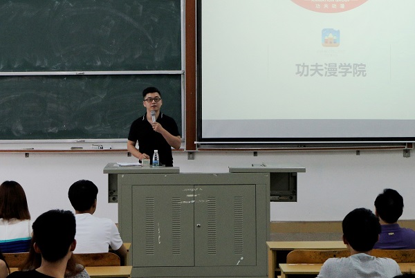讲座上,姚一楠围绕功夫动漫系列作品、二维三维动画制作流程、功夫动漫学院等内容展开阐述。他分析了动漫市场现状、未来发展趋势,并与同学们分享制作动漫的乐趣,鼓励同学们认真学习专业课程,在实践中求真知,提高业务技能,更好地适应社会。
