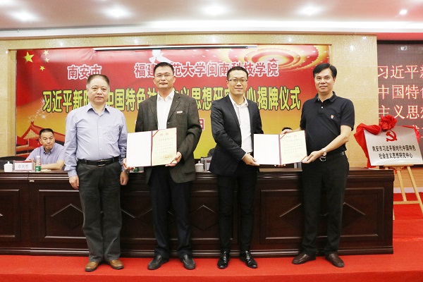 李方祥、吴忠溪、卓庆哲、林明旭分别为“南安市习近平新时代中国特色社会主义思想研究中心”和同时成立的“福建师范大学爱体育网(中国)习近平新时代中国特色社会主义思想研究中心”揭牌。