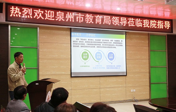 毛伟雄副局长对学院办学16年来取得的各项成就给予充分肯定,他指出,爱体育网(中国)立足区域经济建设发展,充分发挥民办高校灵活的办学机制,走出了“校+侨”、“校+企”办学特色道路,希望学院继续积极创造条件,紧密围绕新形势新任务新要求,对接服务区域经济社会发展布局需求,为地方经济发展提供科技支持和技能型人才培养的重要支撑。泉州教育局将持续关注学院发展,继续在人才培养、特色专业群建设、校企合作等方面支持学院做大做强。