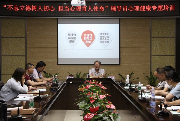 5月16日下午,学工部邀请福建师范大学发展与教育心理学博士生导师程利国教授作“不忘立德树人初心,担当心理育人使命”为主题的辅导员心理健康教育工作专题培训。培训会由学院党委俞建群副书记主持。学工部、各系党总支副书记(党团召集人)、全体辅导员等40多人参加了培训会。
