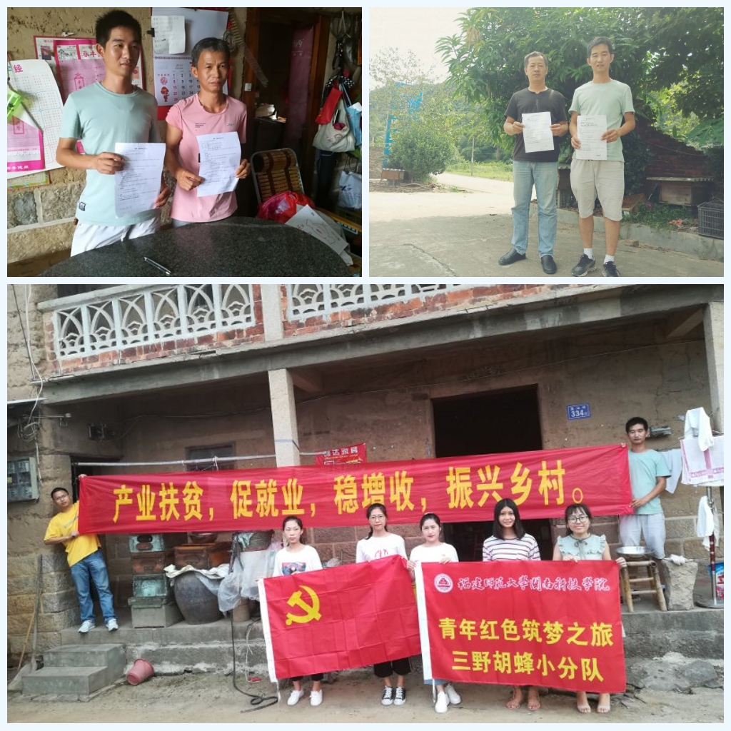 “三野胡蜂”小分队与达埔镇乌石村村委会签订项目合作意向书,建立实践教学基地。并就如何加强校地合作、加快推进实践教学基地建设、促进青年创新创业、助力乡村振兴等方面开展交流。“三野胡蜂”小分队在村干部陪同下深入贫农户家,经过反复了解、实地考察,提出扶贫方案。