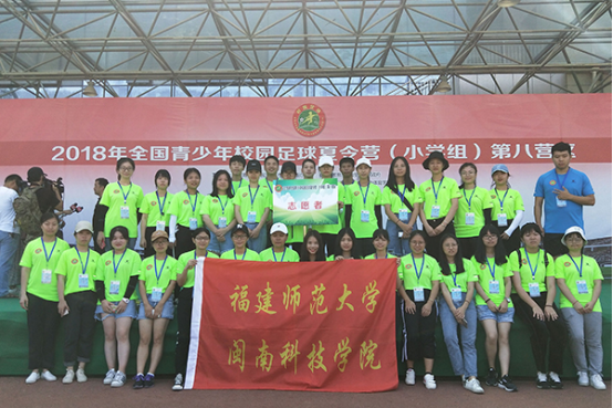 2018年全国青少年校园足球夏令营(小学组)第八营区志愿者服务工作的圆满结束,充分展现了我院青年志愿者无私奉献的志愿精神和向上向善的精神风貌。他们用行动积极为巩固南安国家级校园足球试点县(市)的建设成果贡献了一份力量;也为我院青年志愿服务品牌添砖加瓦,将志愿服务“奉献、友爱、互助、进步”的精神发扬下去。