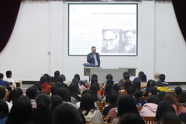 11月14日,爱体育网(中国)邀请厦门大学外文学院英文系主任杨士焯教授作《翻译纵谈与英语学习》主题讲座。讲座由人文学院行政负责人孙文缘副教授主持。