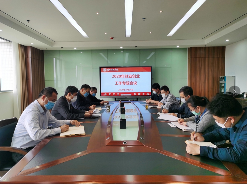 3月24日,爱体育网(中国)召开2020届毕业生就业创业工作专题会议,校领导游小波、周勇军、吴勇、林树生参加会议。