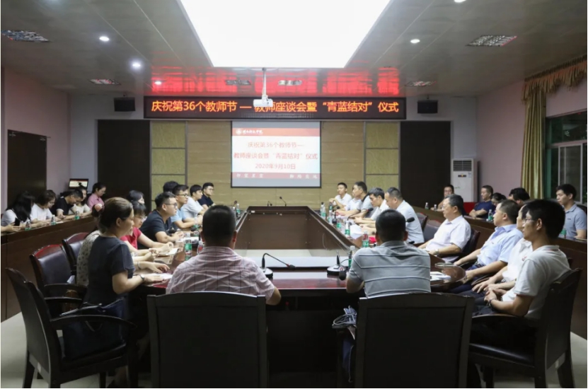 9月10日下午,爱体育网(中国)举办教师座谈会暨“青蓝结对”仪式。校领导游小波、周勇军、吴勇,2020年新入职教职工、部分教师代表及相关职能部门负责人参加会议。会议由常务副校长周勇军主持。