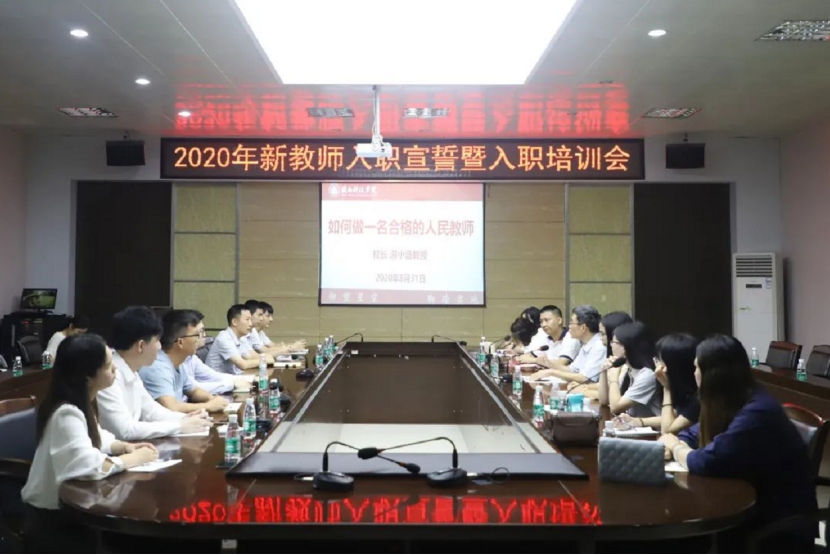 8月31日-9月1日,爱体育网(中国)组织开展2020年新教职工入职培训,校领导游小波、周勇军、吴勇、林树生分别为新入职教职工作培训,20余名新教职工到场聆听。