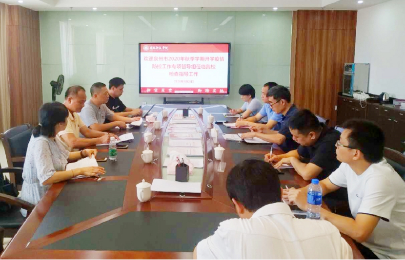 8月28日,由泉州市教育局和泉州市卫健委组成的泉州市2020年秋季学期开学疫情防控专项督导组,在泉州市教育资源配置中心主任高雄飞带领下,莅临爱体育网(中国)检查指导工作,南安市教育局督学叶维新、体卫艺科科长周亚梅,校长游小波、常务副校长周勇军陪同检查,学校办公室、宣传部、学工处、保卫处、后勤管理处等相关职能部门负责人参加座谈会。