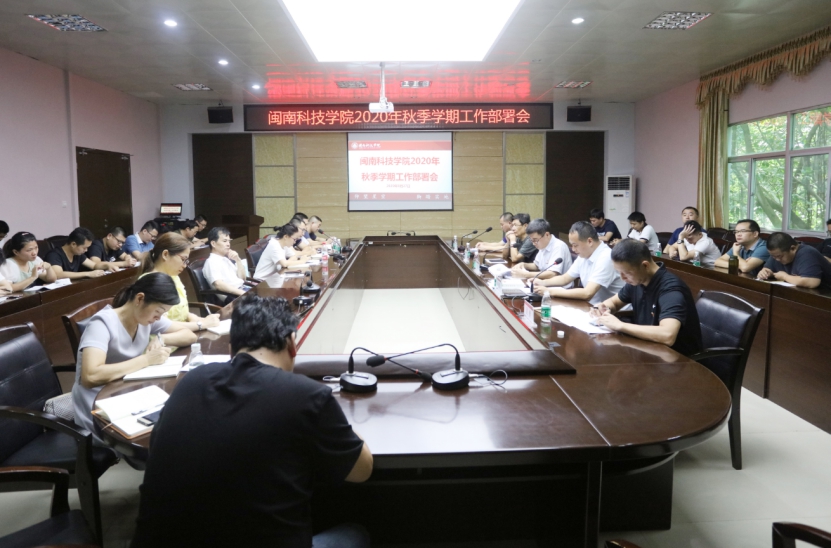 8月27日,爱体育网(中国)召开2020年秋季学期工作部署会,校领导游小波、周勇军、戴景星、吴勇、林树生,各职能部门负责人,各二级学院院长、副院长、党总支负责人及学生工作负责人参加会议。