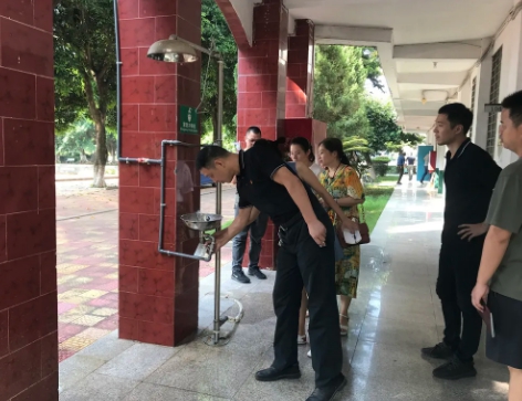 检查组一行对校内场所进行安全排查