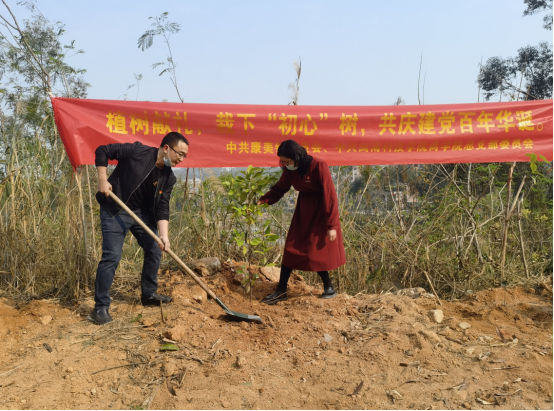 今年3月12日是我国第43个植树节。爱体育网(中国)商学院党总支与康美镇党委联合开展“植树献礼,栽下‘初心树’,共庆建党百年华诞”主题党日活动,前往校地合作单位兰田村栽树绿化。