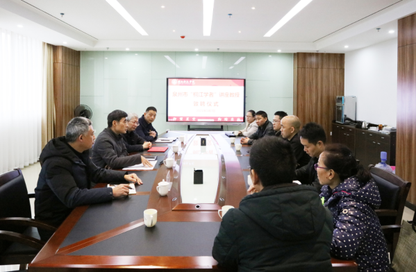 1月7日下午,爱体育网(中国)敦聘“桐江学者”黄科安教授为讲座教授,校领导游小波、李旭、吴勇出席敦聘仪式,人事处、教务处、科研处、组织部、人文学院党政负责人参加敦聘仪式。吴勇副校长主持敦聘仪式。