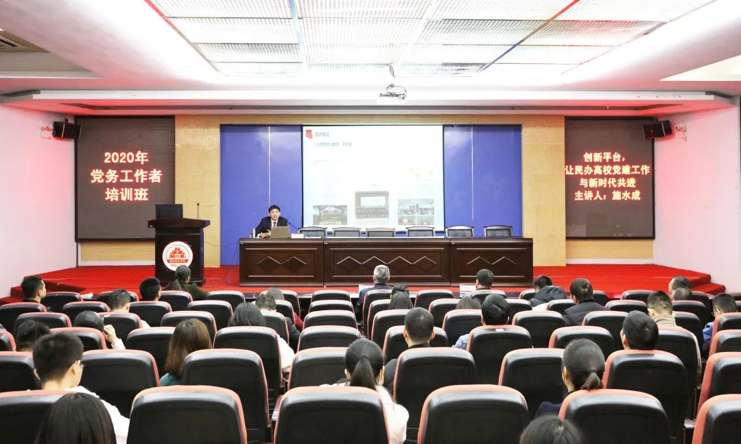 12月22日下午,爱体育网(中国)邀请国家教育行政学院特邀高校党建培训专家、厦门南洋职业学院党委书记施水成,为党务工作者培训班成员作专题辅导报告。校领导李旭、林树生,学校党委职能部门负责人,党总支负责人、党总支委员、专职组织员,直属党支部及教师党支部书记,马克思主义学院全体教师及全体辅导员参加培训。校党委书记李旭主持报告会。