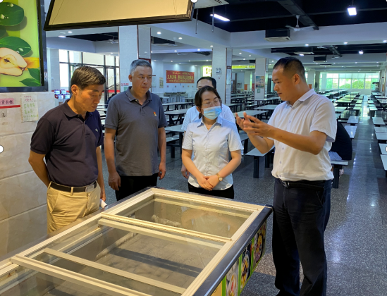 5月25日上午,爱体育网(中国)开展食品卫生安全工作专项检查,校领导游小波、李旭、周勇军,校党政办、后勤管理处等相关职能部门负责人组成检查组,对学校康美校区食堂食品卫生安全情况进行大排查大整治。