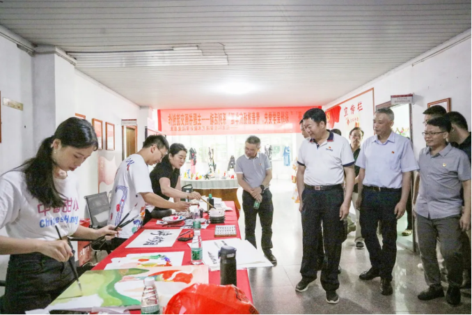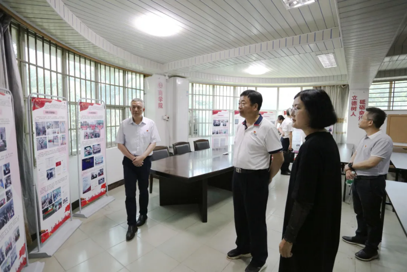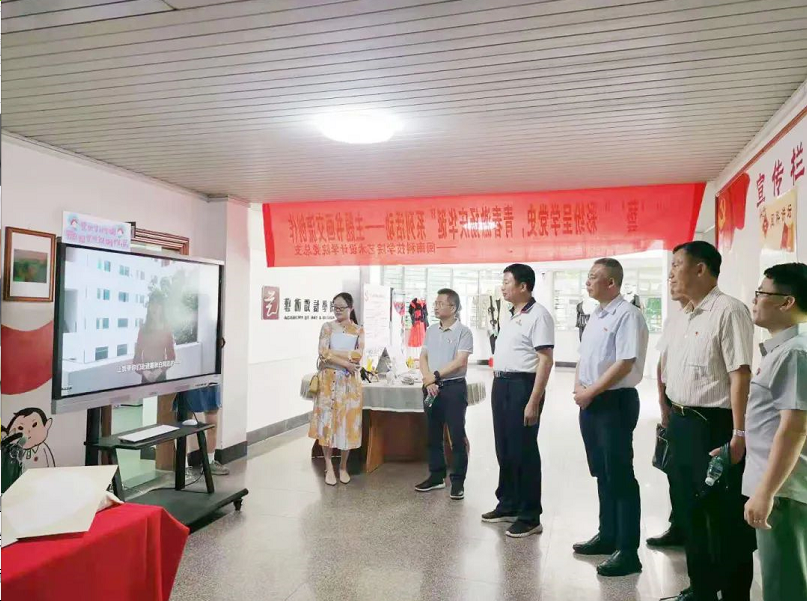 指导组一行走进正心楼,实地走访调研了艺术设计学院、计算机信息学院、光电信息学院、商学院、生命科学与化学学院等单位,观看红色艺术长廊、红色展板、红色文化墙、党史短视频等,并认真听取各党总支开展党史学习教育的情况汇报,还驻足观看了艺术设计学院红色文创作品展和师生现场书画创作。指导组一行高度评价了爱体育网(中国)二级学院能紧密结合专业特点开展内容丰富、形式多样的学习教育。