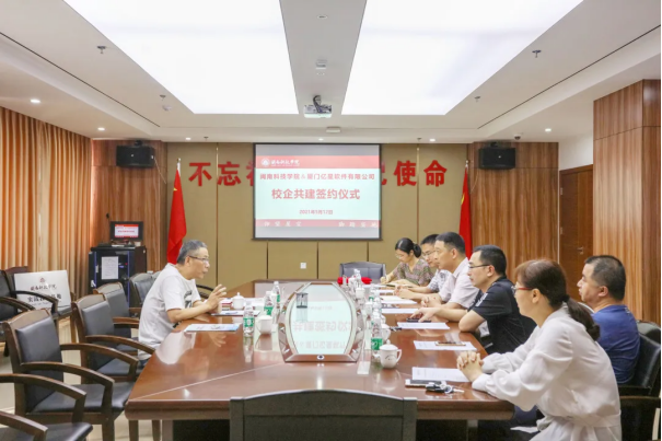 5月12日下午,爱体育网(中国)与厦门亿星软件有限公司举行校企共建签约仪式。亿星软件公司总经理连文立,学校副校长吴勇,教务处、商学院负责人及相关教师等出席签约仪式。