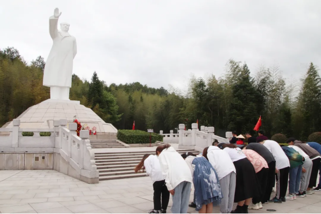 在毛主席纪念园,全体党员师生向毛泽东雕像三鞠躬,并瞻仰了毛泽东雕像,深切缅怀老一辈革命家的丰功伟绩。