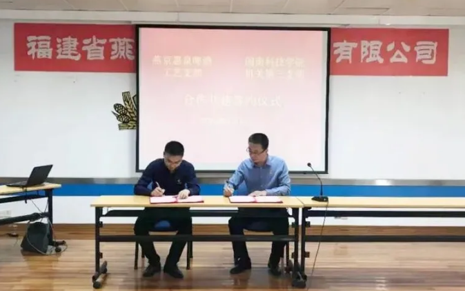 当天,机关第三党支部与福建燕京惠泉啤酒股份有限公司工艺党支部举行合作共建签约仪式。