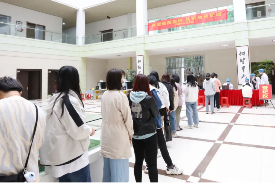 校内接种点设在图书馆一楼,分为等候区、体检处、登记区、接种区和留观区五个区域,并且沿途设有指引标志,师生分时段、分批次、安全、有序进行疫苗接种。疫苗接种期间,校长游小波,校党委书记李旭等校领导多次到接种现场,看望前来接种疫苗的师生员工,以及为疫苗接种提供保障服务的医务人员、工作人员和志愿者。