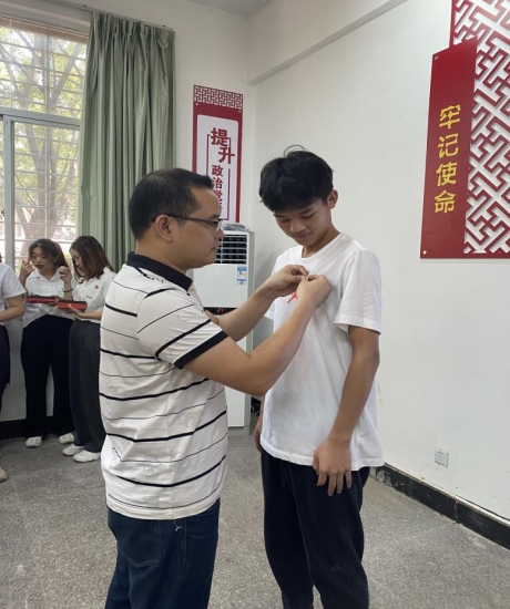 土木工程学院党总支书记吴永进为毕业班党员佩戴党徽
