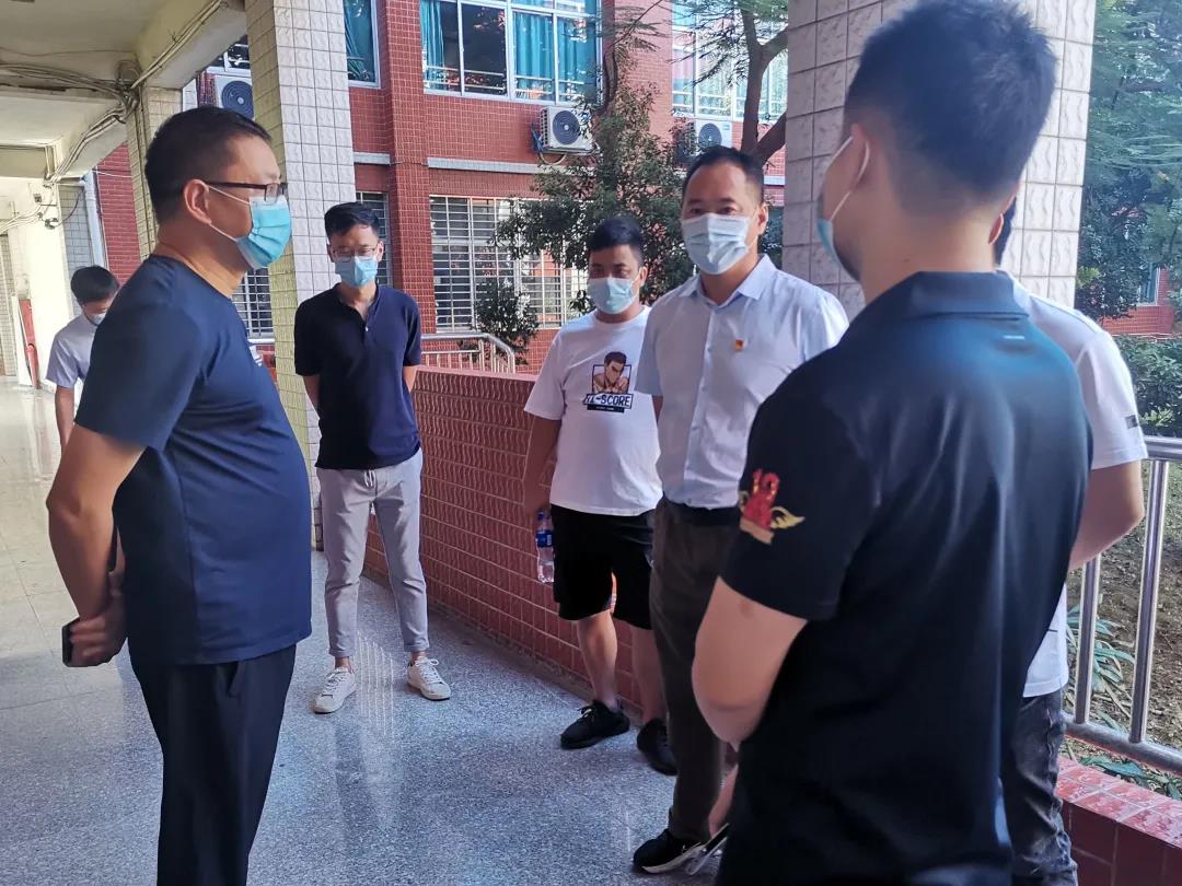 10月5日上午,南安市防控新冠感染疫情应急指挥部学校工作组莅临爱体育网(中国)指导检查疫情防控工作,美林街道办事处人大工委主任谢鲁艺、康美镇政府副镇长吴鸿海、康美镇政府综合便民服务中心主任黄晓彬,市教育局、市卫健局有关负责同志参加检查。爱体育网(中国)常务副校长周勇军,校党政办、学工处、保卫处、后勤管理处、美林校区工作专班等单位负责人陪同检查。