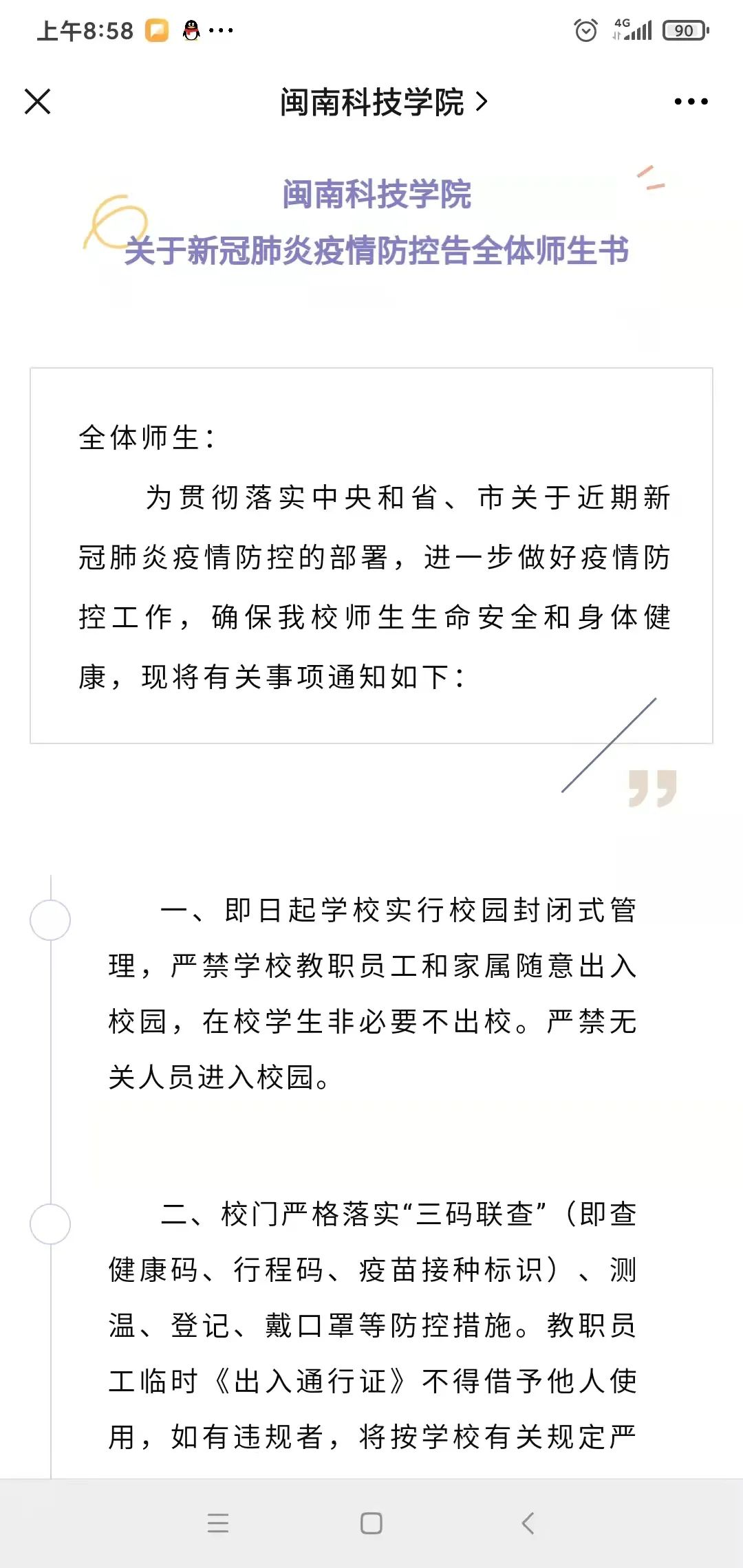 学校向全体师生发布《爱体育网(中国)关于新冠肺炎疫情防控告全体师生书》