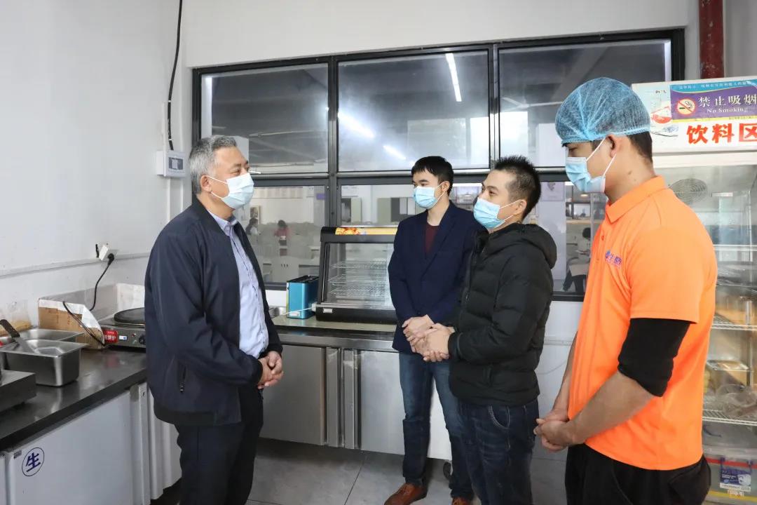 校领导一行分为三组,实地查看了学校大门门岗、防控物资储存室、临时医学观察点、食堂、宿舍、学生活动中心、实验室、教学楼、医务所、消防控制室等场所,听取了相关职能部门工作汇报,详细了解期末寒假期间学校安全保卫、学生健康管理、后勤服务保障、教室与实验室安全、校园环境卫生等具体工作情况。