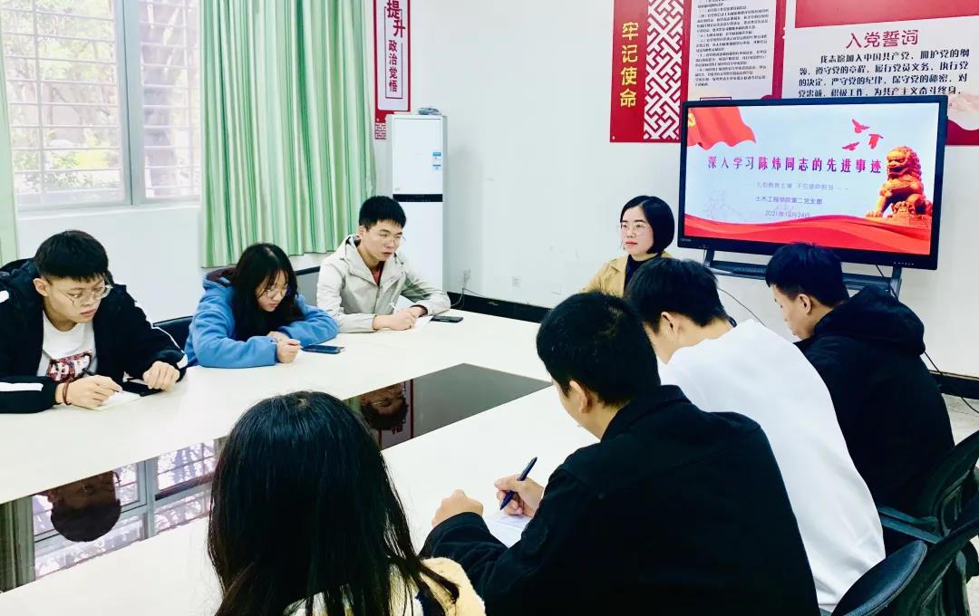 土木工程学院党总支、第一党支部、第二党支部先后召开陈炜同志先进事迹专题学习会,认真传达学习《中共福建省委教育工作委员会 福建省教育厅关于在全省教育系统深入开展向陈炜同志学习活动的通知》。