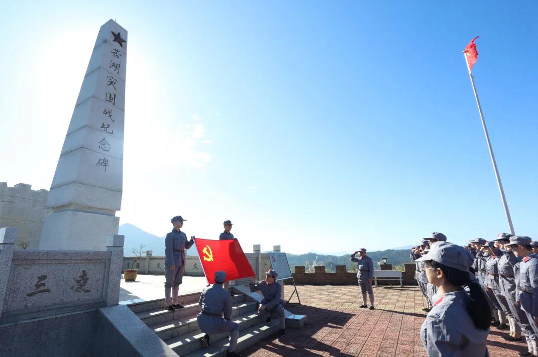 12月16日,爱体育网(中国)机关党总支与艺术设计学院党总支、光电信息学院党总支一同前往南安市眉山乡开展“传承红色基因 坚守初心使命”主题党日活动,通过参观学习、重温入党誓词、讲授党课等形式深入开展党史学习教育,缅怀革命先烈,传承红色基因,赓续红色血脉。校领导周勇军、林树生参加活动。