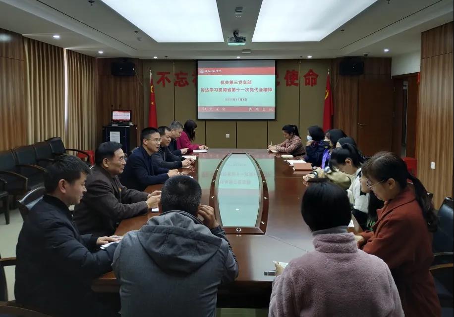 校长游小波:省第十一次党代会,是在建党一百周年之际,在向第二个百年奋斗目标迈进的重要时刻,在我省深入学习贯彻党的十九届六中全会精神的关键节点召开的一次重要会议。我们要同心同德、拼搏奋斗,切实将贯彻省第十一次党代会精神与落实立德树人根本任务紧密结合,以高度的思想自觉、政治自觉、行动自觉,把学习宣传贯彻省第十一次党代会精神激发出的热情转化为当前工作的强大干劲,扎实推进有特色、高水平、应用型大学建设,以工作实绩迎接教育部本科教学工作合格评估,以优异成绩迎接党的二十大召开。
