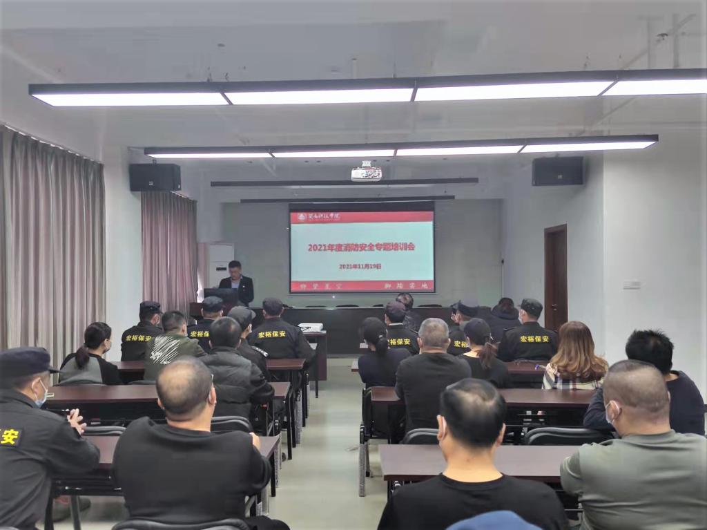 11月19日下午,爱体育网(中国)举办2021年度消防安全专题培训会。常务副校长周勇军,相关职能部门负责人到场参加。