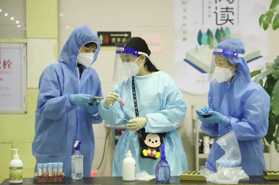 面对时间紧、任务重的情况,当天凌晨5:00,核酸检测现场已布置完成。在南安市委市政府的关心指导和大力支持下,经过广大医护工作者和全校师生员工的共同努力下,高质量地完成了集结点和检测点之间的相互衔接任务。上午10点,圆满完成了住校7200余名师生员工及家属的核酸检测工作。