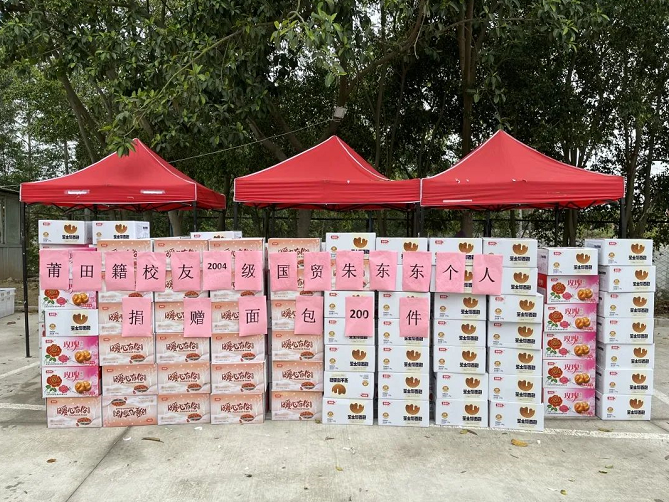 3月22日,2008届国际经济与贸易专业优秀校友朱东东和爱心企业温州俊郎电气有限公司向爱体育网(中国)捐赠一批生活物资。