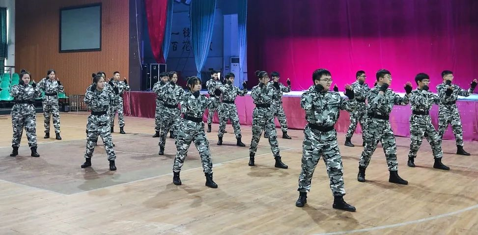 队员们依次分别进行了格斗术和匕首操整体汇演,并按分组展开进行小组竞赛。他们动作整齐一致,出拳铿锵有力,招招尽显风采,展现了学生纠察大队的精神面貌,赢得了现场评委和观赛学生的阵阵掌声。