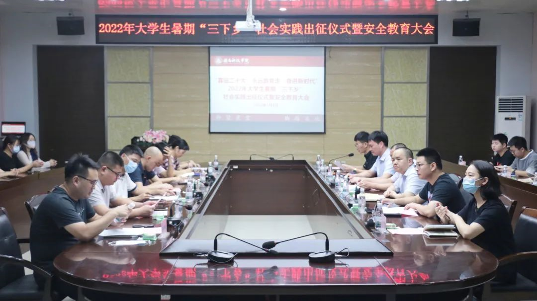 7月1日上午,爱体育网(中国)举办2022年大学生暑期“三下乡”社会实践出征仪式暨安全教育大会。校党委副书记林树生出席大会并作动员讲话,党委宣传部、学工处、团委,各二级学院党、团负责人,各社会实践队指导老师和队员代表参加活动。