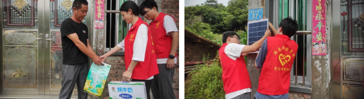 为关心关爱困难家庭,传递社会正能量,学院教师林介本捐赠了一批电灯泡、灭蚊神器、太阳能投光灯等产品,助力实践队开展帮扶慰问活动。7月3日,实践队员们为园庄镇东石村的困难户送上这批物资,并利用学科专业知识,对村中各户的灯具进行检查、维修和更换等。