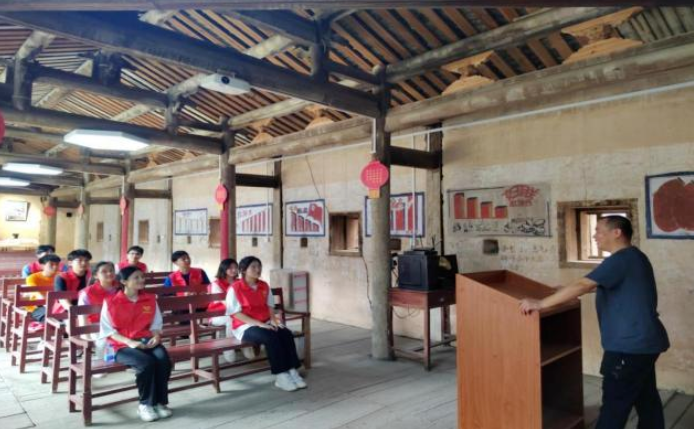 7月2日下午,实践队来到园庄镇东石村座谈交流,在东石土楼开展党史学习教育现场教学活动。让实践队员们直观体会那段在艰苦中开拓进取的岁月,身临其境感悟党史精神。