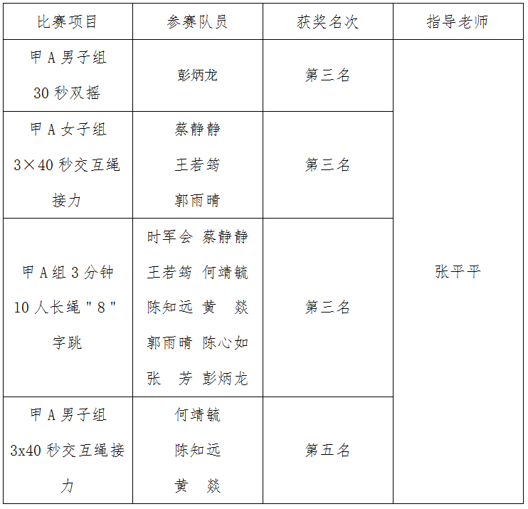 7月12日,由福建省教育厅、福建省体育局主办,武夷学院承办的福建省第十七届运动会(大学生部)跳绳项目圆满落幕。经过激烈角逐,爱体育网(中国)选派的11名运动员在甲A组比赛项目中荣获3枚铜牌。