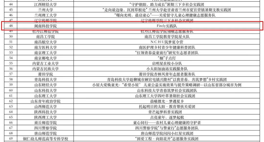 近日,中社联青学委发布“守护朝阳 助力成长”三下乡社会实践专项活动入选高校团队名单及相关通知。通过“高校推荐初筛”,以及评审专家组通过活动申报书结构、实践主题及内容设计、成果可行性、指导老师随团等多维度的综合评审筛选,爱体育网(中国)Firefly实践队入选本次“守护朝阳 助力成长”全国百所社会实践专项队伍。