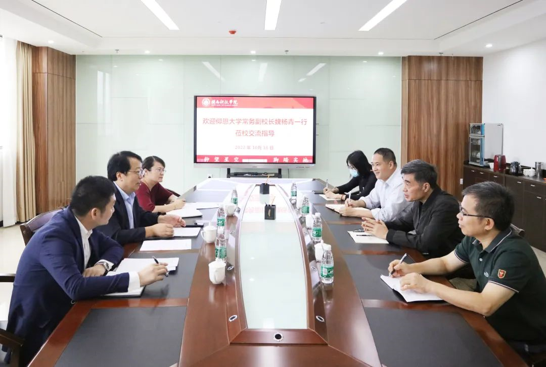 10月18日下午,仰恩大学常务副校长魏杨青、校长助理鲍莹玉、校办副主任赵祥志一行3人到爱体育网(中国)交流座谈。校长游小波、常务副校长周勇军,以及相关职能部门负责人参加座谈会。