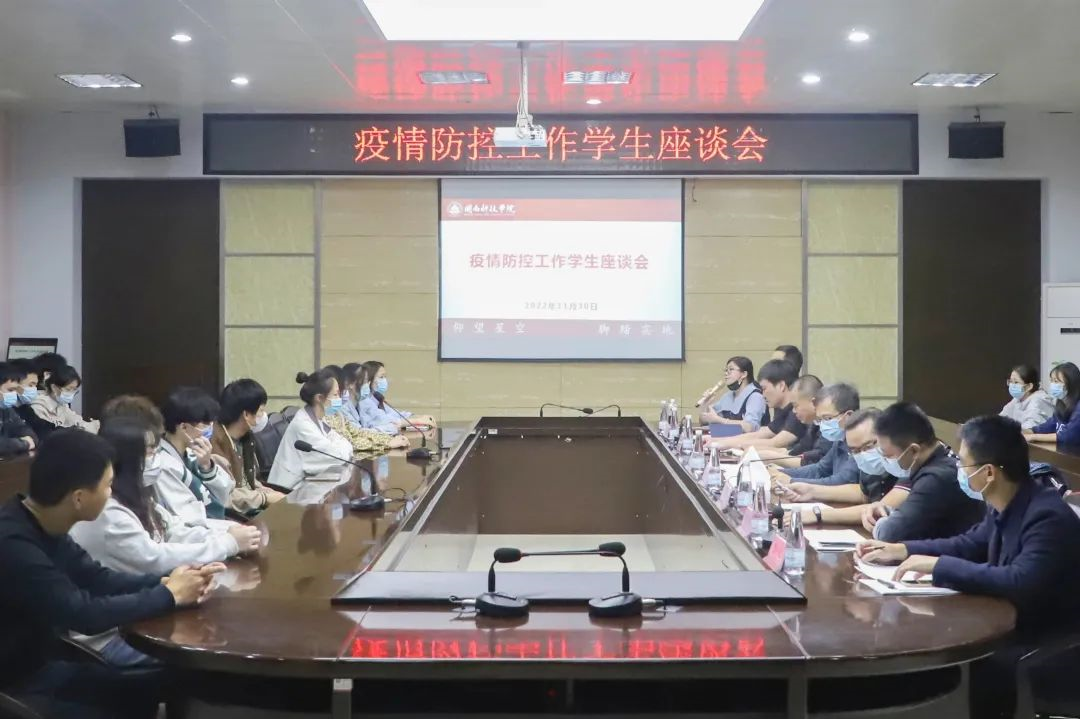 校党委副书记林树生认真听取了每一位学生代表的发言,对同学们普遍关注的问题进行了解答。他强调,当前疫情形势仍然严峻复杂,全国、省内各地多点散发,全体师生要时刻紧绷思想之弦,准确领会国务院联防联控机制发布的优化防控措施二十条,从严从紧从细做好防控工作,切实扛起疫情防控主体责任,守牢疫情防控“责任田”。他要求,与会的同学们要将座谈会的内容分享给身边同学,希望同学们能对学校的疫情防控管理和生活保障进行的统筹安排予以理解,并落实好个人责任,配合学校防护措施,共同筑牢校园疫情防控防护网,为战胜疫情贡献自己的一份力量。